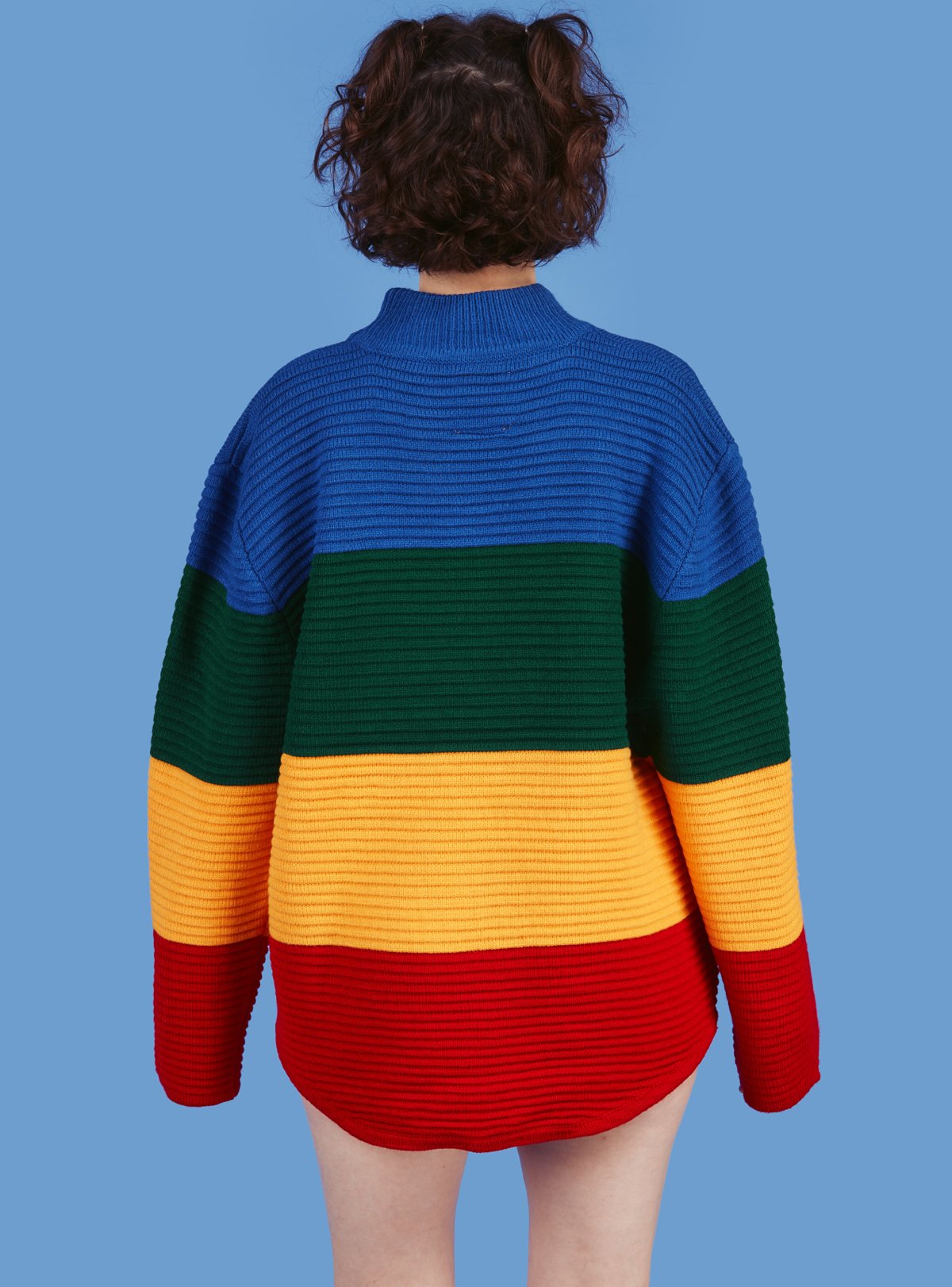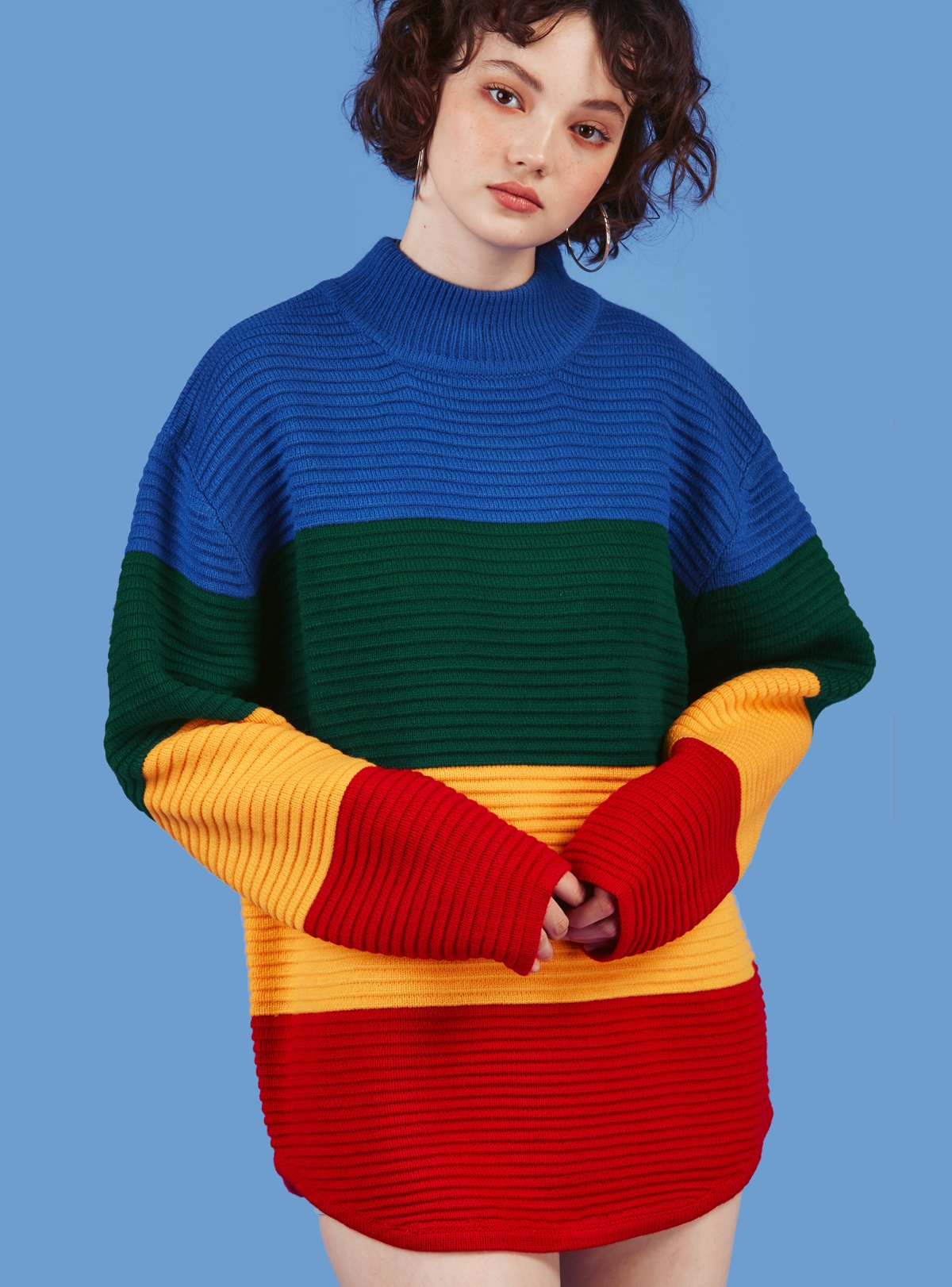 Oversized, color blocked sweater with textured ribbing. Fit is oversized but runs true.